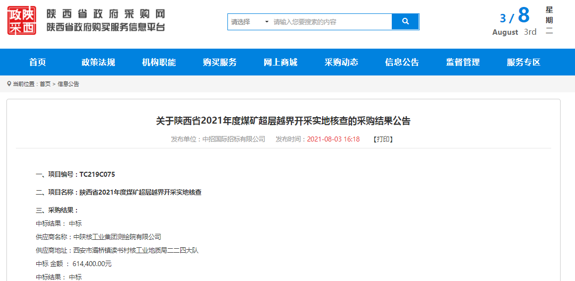 測(cè)繪院成功中標(biāo)陜西省2021年度煤礦超層越界開采實(shí)地核查項(xiàng)目 -